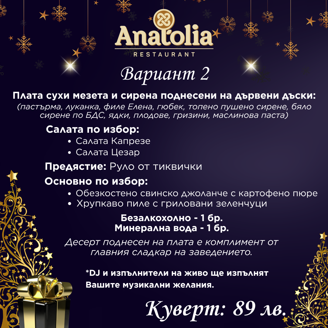 Направете тази Коледа специална – с вкус, музика и празнична магия в ресторант Anatolia!