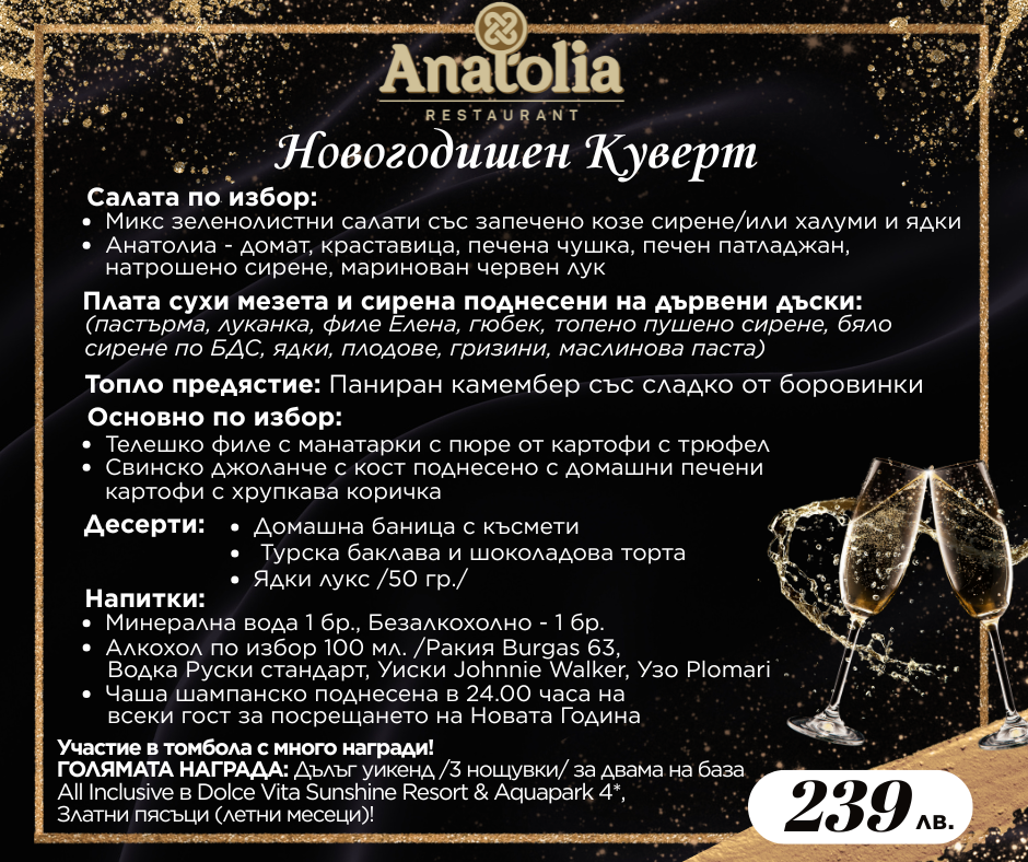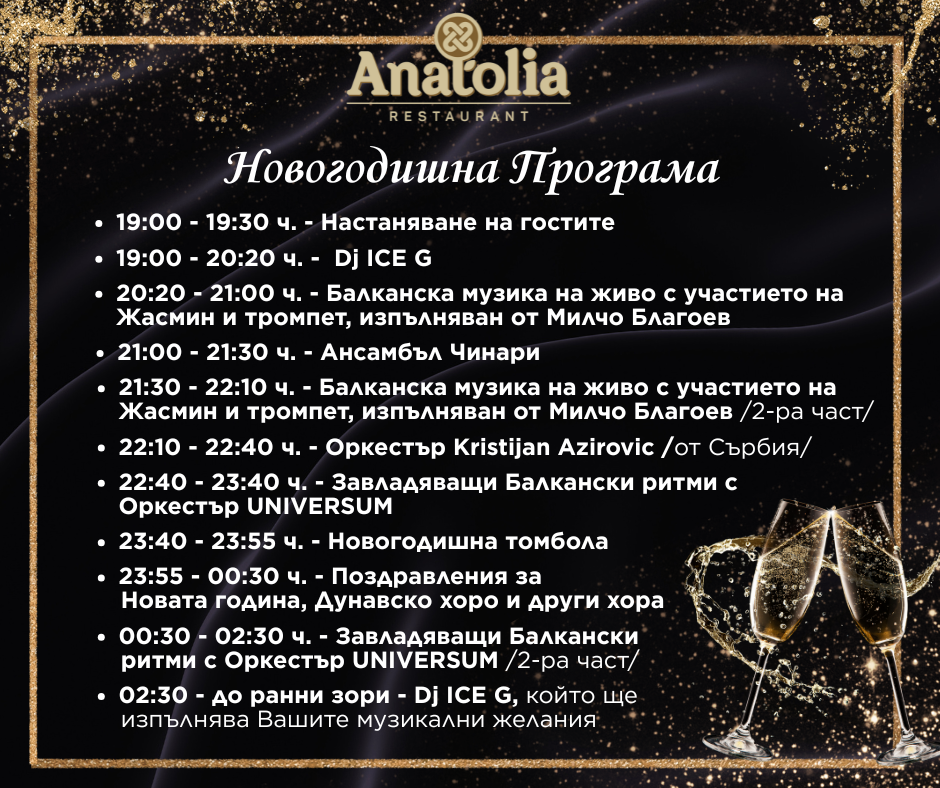Ресторант Anatolia – Вашето място за вълшебна Новогодишна нощ!