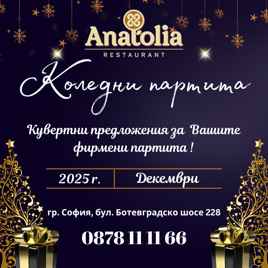 Ресторант Anatolia Ви кани да организирате своето фирмено коледно парти в изискан и празничен стил.